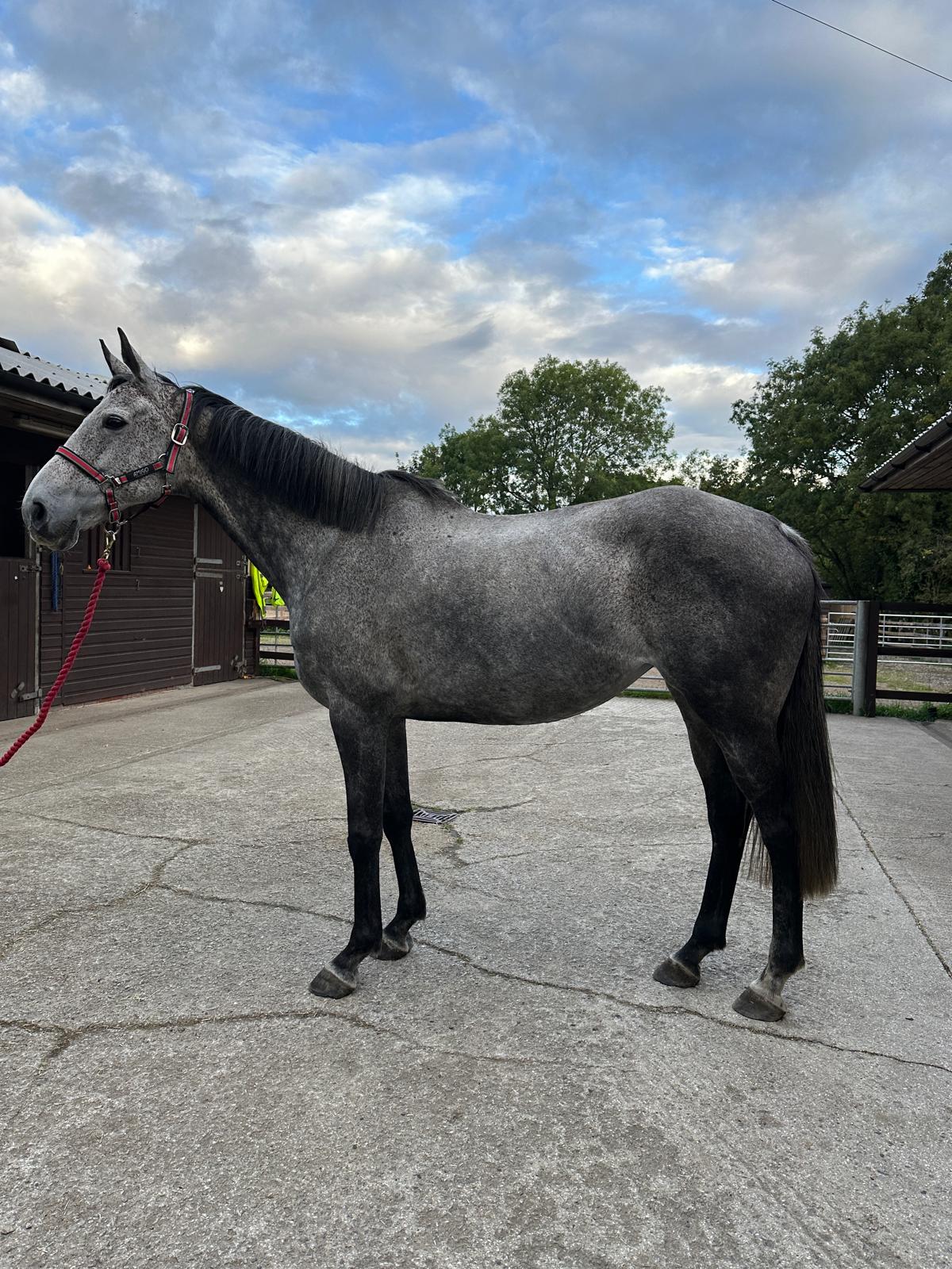 Silver is looking for a companion home only due to an old racing injury. She would suit a nice, quiet home with at least one other companion. Silver cannot be left alone for any period of time as she has separation anxiety. She prefers to live out 24/7 but will stable if it's part of a routine and brought in with her companion.